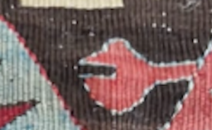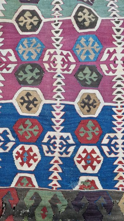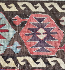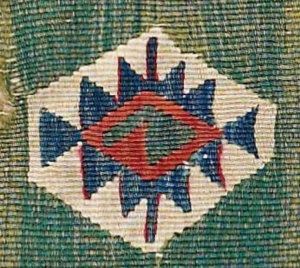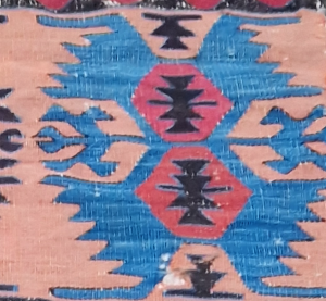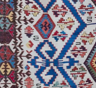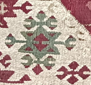Im Stern ist ein Motiv zu sehen, das nur in anatolischen Kelims und Teppichen vorkommt: Bukağı.